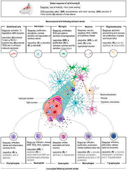 Since immune cells such as macrophages, neutrophils, and lymphocytes T and B are determining factors for the extension of cerebral ischemic lesions, they should be considered in this review on roscovitine.