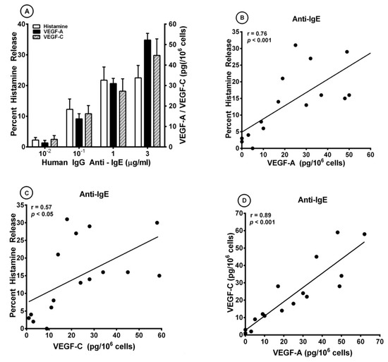 3.1. Effects of Human IgG Anti-IgE on the Release of Angiogenic and Lymphangiogenic Factors from HLMCs