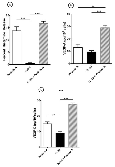 3.3. Effects of IL-33 on the Release of Angiogenic and Lymphangiogenic Factors from HLMCs