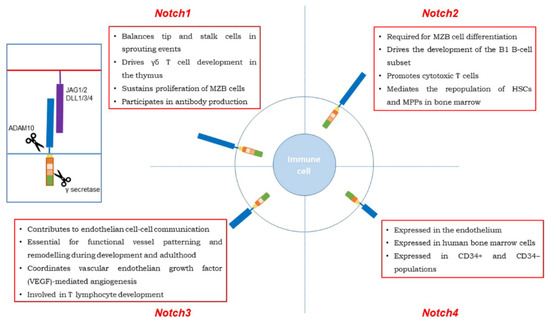 In the spleen, Notch 2 activation is crucial for marginal zone (MZ) B-cells growth [115] and for the dendritic cells (DCs) differentiation [116].