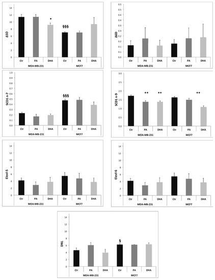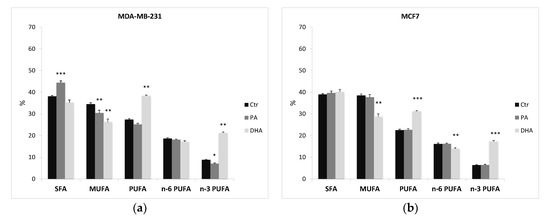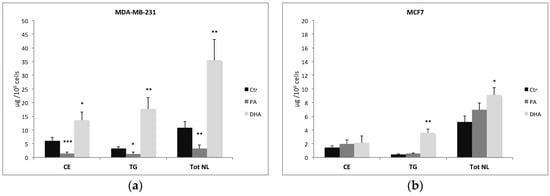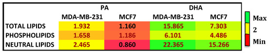 3.1. Impact of Lipid Microenviroment on Lipid Phenotype of MCF7 and MDA-MB-231 Breast Cancer Cells