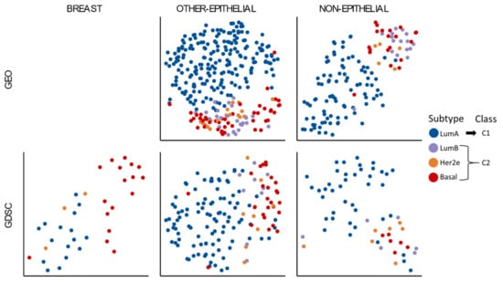 - Chung, C.H.; Bernard, P.S.; Perou, C.M. Molecular portraits and the family tree of cancer. Nat. Genet. 2002, 32, 533–540. [Google Scholar] [CrossRef]