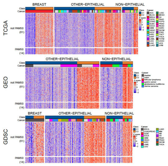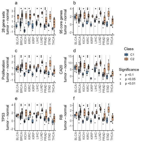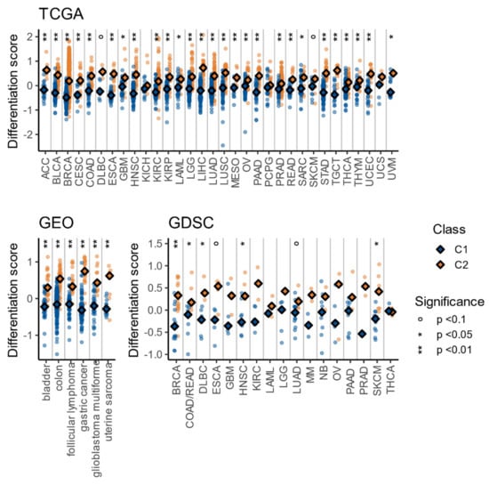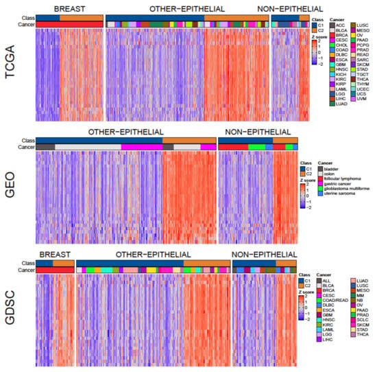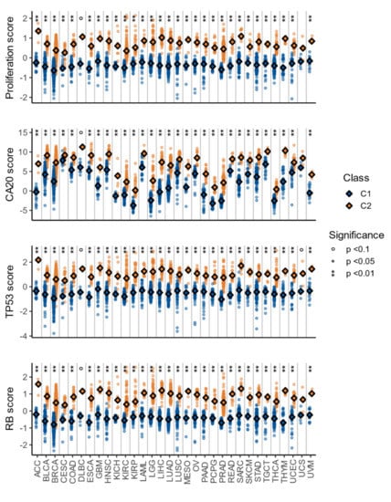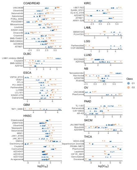 3.3. A Tumor-Agnostic Set of Genes Differentiate C1 from C2 Classes