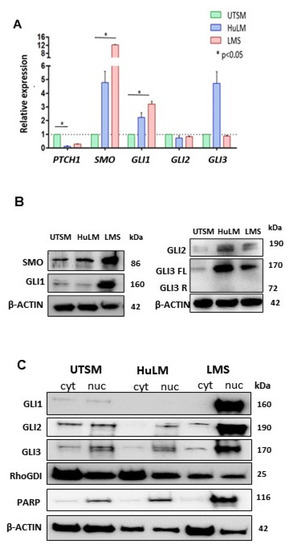 3.1. Hedgehog is Activated in LMS with Increased GLI Nuclear Translocation