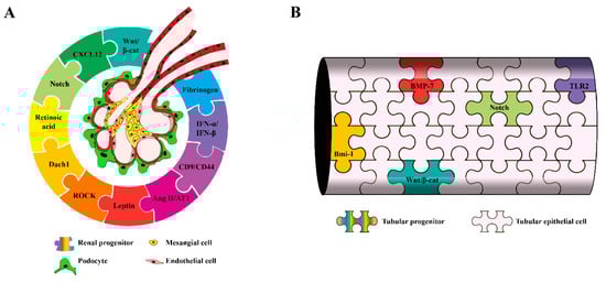 Here, we propose an overview of the molecular mechanisms taking place in glomerular and tubular renal progenitors in physiological and pathological conditions (Figure 1) and of how a dysregulation of these pathways could be at the origin of kidney disease. We will also examine how renal progenitors could be further characterized using single-cell RNA sequencing (scRNAseq) technology and the clinical relevance of the molecular signature of these cells.