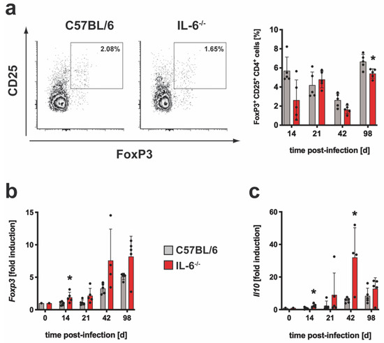 3.1.2. The Regulatory Immune Response in IL-6−/− Mice after Infection with Mtb