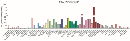 Normalized FHL2 mRNA expression in multiple tissues. Based on transcriptomic data from three sources: HPA, GTEx, and FANTOM5 (Protein Atlas: https://www.proteinatlas.org/). Accessed in July 2021.