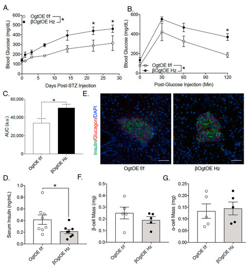 3.4. OgtOE Hz Mice Shows Increased Susceptibility to Streptozocin (STZ)-Induced Hyperglycemia