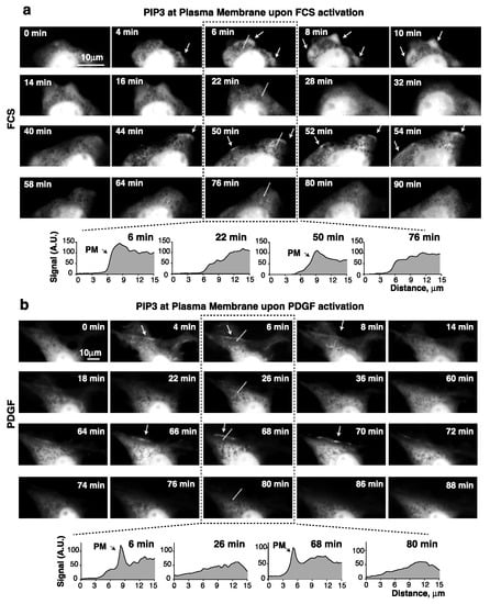 3.2. PDGF and Serum Induce Transient PIP3 Recruitment to the Plasma Membrane