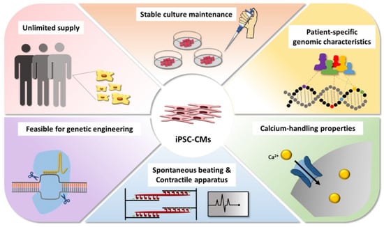 iPSC-CMs are an excellent disease model to recapitulate the induction of cardiotoxicity by chemotherapeutic agents in cardiomyocytes. In particular, iPSC-CMs provide an unlimited cell source unlike many restrictions of animal models and primary cell lines. iPSC-CMs not only exhibit many cardiac-specific behaviors, including a cardiac contractile apparatus and calcium-handling features, but also demonstrate physiological and transcriptional responses after chemotherapy [].
