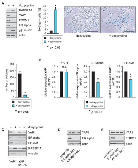 2.1. RASSF1A Decreases YAP1 Protein Levels and Inhibits FOXM1 and ERα Expression