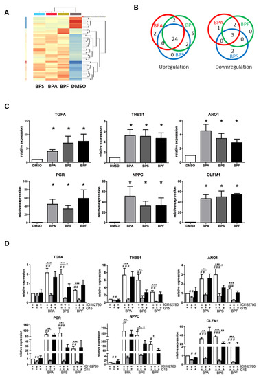 3.6. Effect of BPA, BPS, and BPF on the Transcriptome of Treated Ishikawa Cells