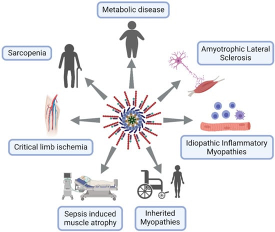 This section is dedicated to muscle diseases where NLRP3 has been described to play a key pathogenic role (Figure 3).