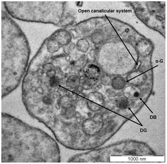 - White, J.G.; Gerrard, J.M. The ultrastructure of defective human platelets. Mol. Cell. Biochem. 1978, 21, 109–128. [Google Scholar] [CrossRef]