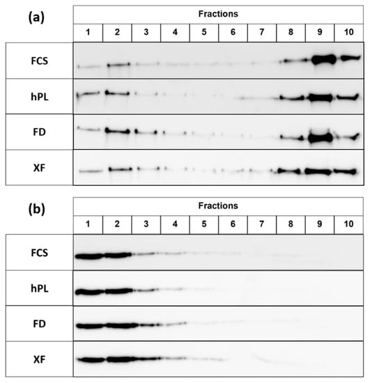 - Burnouf, T.; Strunk, D.; Koh, M.B.; Schallmoser, K. Human platelet lysate: Replacing fetal bovine serum as a gold standard for human cell propagation? Biomaterials 2016, 76, 371–387. [Google Scholar] [CrossRef]