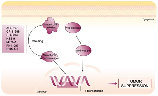 - Bullock, A.N.; Fersht, A.R. Rescuing the function of mutant p53. Nat. Rev. Cancer 2001, 1, 68–76. [Google Scholar] [CrossRef]