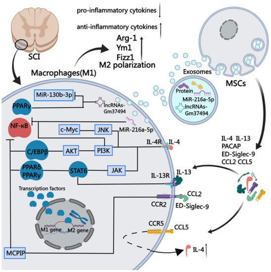 - An, N.; Yang, J.; Wang, H.; Sun, S.; Wu, H.; Li, L.; Li, M. Mechanism of mesenchymal stem cells in spinal cord injury repair through macrophage polarization. Cell Biosci. 2021, 11, 41. [Google Scholar] [CrossRef] [PubMed]