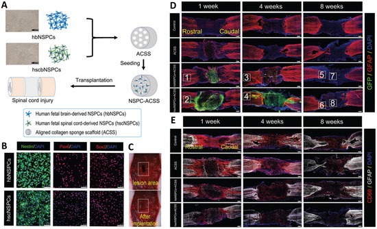 - Katoh, H.; Yokota, K.; Fehlings, M.G. Regeneration of spinal cord connectivity through stem cell transplantation and biomaterial scaffolds. Front. Cell. Neurosci. 2019, 13, 248. [Google Scholar] [CrossRef] [PubMed] [Green Version]