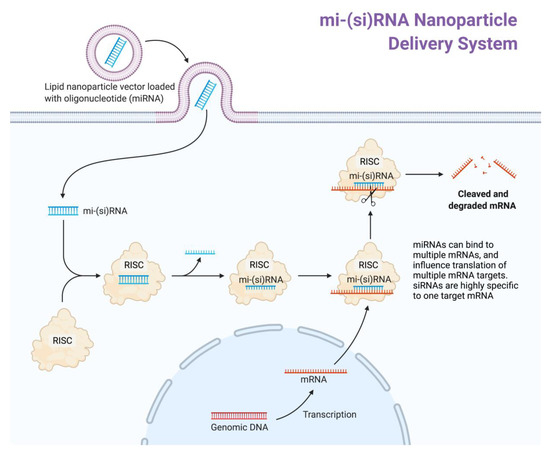 Reprinted from “siRNA Nanoparticle Delivery System”, by BioRender.com (2020). Retrieved from https://app.biorender.com/biorender-templates (accessed on 15 October 2021).