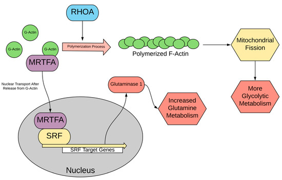 6. RHOA and Serum Response Factor (SRF)—Regulating Mitochondrial Fusion versus Fission and Glutaminolysis