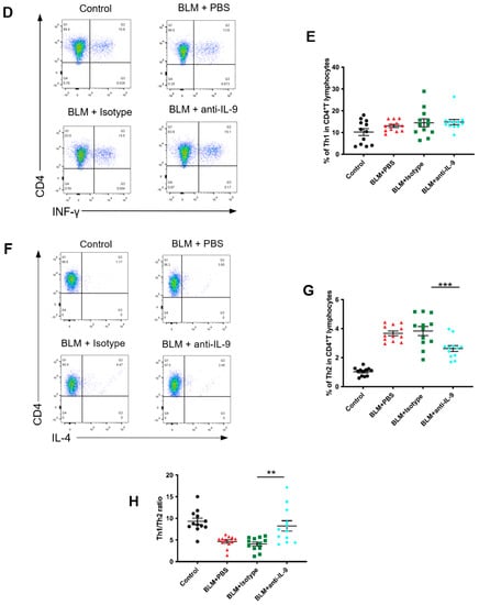 2.2. Th9 Differentiation and Activation Increase in Lung Tissue of BLM-Induced Lung Fibrosis Mice