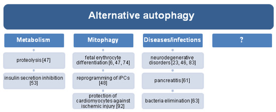 As it is a relatively new area of research and the knowledge regarding its characteristic proteins remains incomplete [39], relatively little is currently known about the biological roles of alternative autophagy.