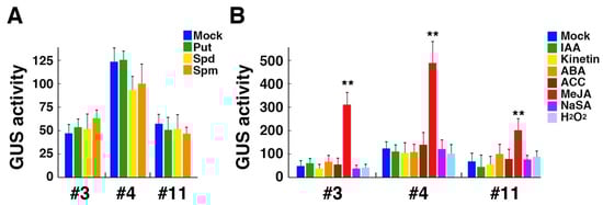 3.3. OsPAO6 Promoter Is Responsive to MeJA in Arabidopsis