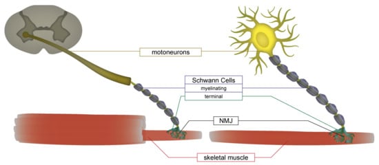 - Barik, A.; Li, L.; Sathyamurthy, A.; Xiong, W.-C.; Mei, L. Schwann Cells in Neuromuscular Junction Formation and Maintenance. J. Neurosci. Off. J. Soc. Neurosci. 2016, 36, 9770–9781. [Google Scholar] [CrossRef] [PubMed]