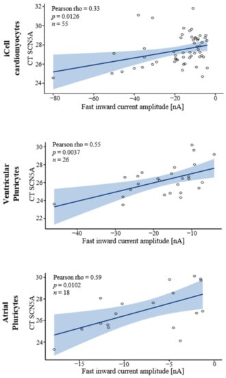 Despite this clear evidence for the heterogeneity of hiPSC-CM cultures, only limited single-cell data are available. Previous studies addressed the expression of certain cardiac channel isoforms at the population level together with the demonstration of certain cardiac ionic currents in single cells (e.g., for SCN5A/INa, CACNA1C/ICaL, and KCNH2/IKr) [15,16,17,18]. However, they utilized different subsets of cells for the investigation of bulk ion channel expression and single-cell electrophysiology (ionic current and action potential measurements), making it impossible to make conclusions about the actual cellular identities, i.e., the combination of ion channels and ionic currents in individual cells. Our study therefore aimed to clarify the characteristics and chamber specificity of commercially available hiPSC-CMs (iCell cardiomyocytes, atrial and ventricular Pluricytes) at the single-cell level by assessing multiple parameters in individual cells. Utilizing a single-cell reverse transcriptase quantitative polymerase chain reaction (RT-qPCR) technique in combination with whole cell patch clamp, we recorded electrophysiological parameters (spontaneous beat rate, capacitance, and sodium-driven fast inward current) and assessed the expression levels of nine cardiac ion channel transcripts associated withknown subtypes of adult human cardiomyocytes (HCN4, CACNA1G, CACNA1D, KCNA5, KCNJ4, SCN5A, KCNJ2, CACNA1C, and KCNH2). We compared spontaneously beating and non-beating iCell cardiomyocytes with respect to electrophysiology and ion channel expression to unravel the composition of the iCell cardiomyocyte culture. We contrasted the electrophysiology data and ion channel expression between iCell cardiomyocytes and atrial and ventricular Pluricytes to assess the chamber specificity of the hiPSC-CM models in comparison to primary atrial and ventricular cells isolated from human donor hearts. In addition, electrophysiological and transcriptomic data of the same cell were used to investigate the correlation between the ion channel transcripts and the electrophysiological parameters. We found that beating and non-beating iCell cardiomyocytes did not represent the nodal, atrial, or ventricular cells of the adult human heart. While our findings point to a trend towards chamber specificity of the atrial and ventricular Pluricytes with respect to ion channel mRNA expression, the majority of all three commercially available cell models are dissimilar to mature human primary cardiomyocytes. They show unexpected combinations of ion channel transcripts and electrophysiological parameters on the single-cell level, combining characteristics of nodal, atrial, and ventricular cardiomyocytes. The apparent lack of subtype specificity clearly limits the applicability of certain hiPSC-CM cultures in research and drug development but at the same time allows for the analysis of several cardiac ion channels in a close to native environment.