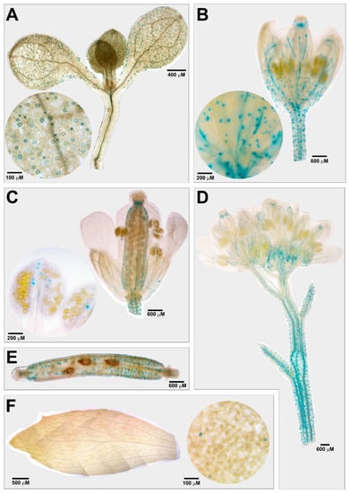- Jefferson, R.A. Assaying chimeric genes in plants: The GUS gene fusion system. Plant Mol. Biol. 1987, 5, 387–405. [Google Scholar] [CrossRef]