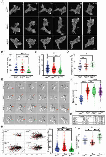 3.5. Abi Phosphorylation Tunes Cell Migration and Pseudopod Formation