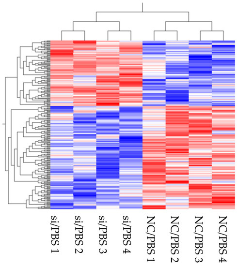 The expression levels of the genes identified in the transcriptome were normalized and compared. Hierarchical clustering and heat maps were created using the Qlucore omics explorer software program (Qlucore AB, Lund, Sweden). Differentially expressed genes (DEGs) were detected for each gene between the two type samples. The fold-changes between each group were >1.5 (upregulated) or <0.66 (downregulated) (p < 0.1). Significantly, over-represented functional categories were identified using Enricher [12]. Genes significantly upregulated or downregulated in “siRNA for DPP4 (siRNA) and PBS vs. negative control of siRNA (NC) and PBS”, “NC/PBS vs. NC/LPS”, or “NC/LPS vs. siRNA/LPS” were annotated. Subsequently, the gene ontology (GO) terms and the Kyoto Encyclopedia of Genes and Genomes (KEGG) pathways were identified. Selected GO terms and KEGG pathways were considered as significant at p < 0.05.