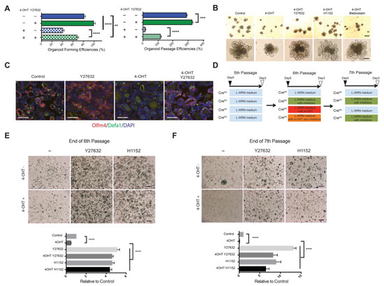 IEC spheroids were generated as described [25]. Spheroid-forming numbers were determined by counting numbers of spheroids per well on Day 3 of the 6th passage in the presence and absence of Y27632 (10 μM), H1152 (0.31 μM) and 4-hydroxy tamoxifen (4-OHT) (Sigma-Aldrich, St. Louis, MO, USA, 1 μM). Spheroid passage numbers were determined by counting numbers of spheroids per well on Day 3 of the 7th passage in the continued presence of inhibitors. Spheroids with diameters ≥100 μM were counted.
