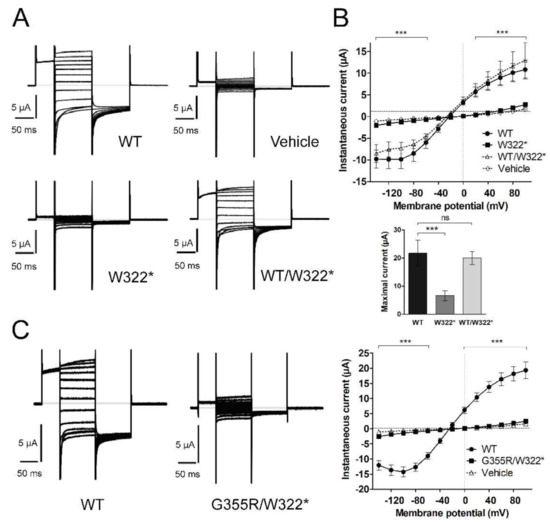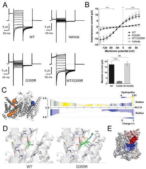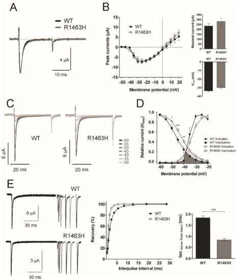 - Yang, N.; Ji, S.; Zhou, M.; Ptacek, L.J.; Barchi, R.L.; Horn, R.; George, A.L., Jr. Sodium channel mutations in paramyotonia congenita exhibit similar biophysical phenotypes in vitro. Proc. Natl. Acad. Sci. USA 1994, 91, 12785–12789. [Google Scholar] [CrossRef]