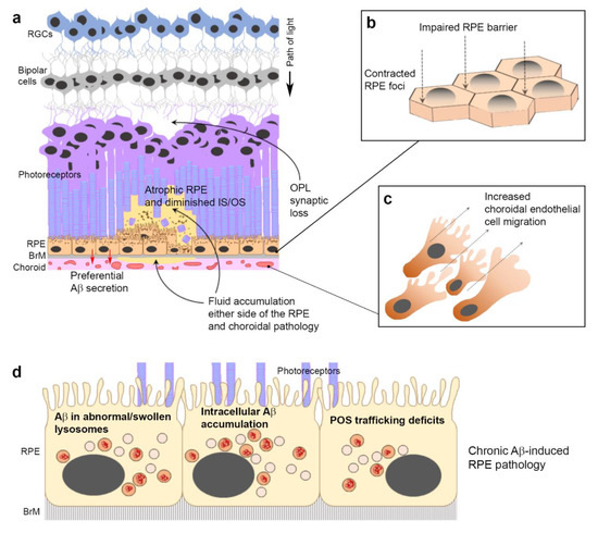 - Liu, C.; Cao, L.; Yang, S.; Xu, L.; Liu, P.; Wang, F.; Xu, D. Subretinal injection of amyloid-beta peptide accelerates RPE cell senescence and retinal degeneration. Int. J. Mol. Med. 2015, 35, 169–176. [Google Scholar] [CrossRef] [PubMed]