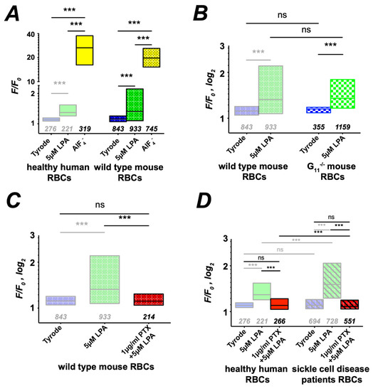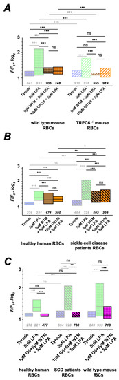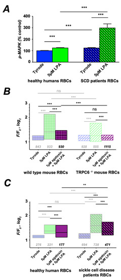 Wang J, Hertz L, Ruppenthal S, El Nemer W, Connes P, Goede JS, Bogdanova A, Birnbaumer L, Kaestner L. Lysophosphatidic Acid-Activated Calcium Signaling Is Elevated in Red Cells from Sickle Cell Disease Patients. Cells. 2021; 10(2):456. https://doi.org/10.3390/cells10020456