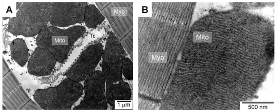 Insect flight muscles are remarkably unique in several aspects, from the morphological, physiological, and biochemical perspectives. For example, in Drosophila the structure of the tropomyosin binding protein troponin T (TnT) has a unique C-terminal extension of ≈70 residues rich in glutamic acid and is essentially expressed in flight and leg muscles [70]. Importantly, TnT is essential for Drosophila motor activity, as climbing and flight abilities were strongly affected by genetic removal of TnT, possibly by acting as a mechanism for Ca2+ buffering [70]. From the morphological perspective, insect flight muscles have remarkable architectural features suggesting that proximity of energy supplying (mitochondria) and demanding (myofibrils) sites would facilitate the flow of substrates to sustain such intense mechanical work during the flight. Structural hallmarks can also be extended at the organelle level, including the high mitochondrial abundance and density, which occupies ≈30–40% of cell volume [13,20,55,71]. The densely packed cristae, resulting from the striking degree of inner membrane juxtaposition, also emerges as a remarkable feature among insect flight muscles (Figure 1B) [20,23,71].