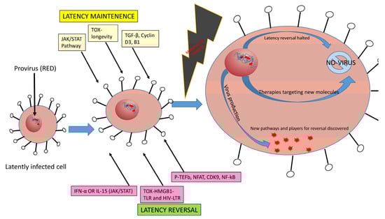 - Sadowski, I.; Hashemi, F.B. Strategies to eradicate HIV from infected patients: Elimination of latent provirus reservoirs. Cell. Mol. Life Sci. 2019, 76, 3583–3600. [Google Scholar] [CrossRef]