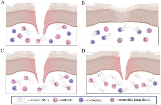 This process is highly resolutive and needs the balanced clearance action of macrophage, but higher levels of spontaneous or induced NETosis can unveil NETs’ negative effects, as they can become effectors for chronic inflammation, impair wound healing, and cause tissue damage and organ failure.