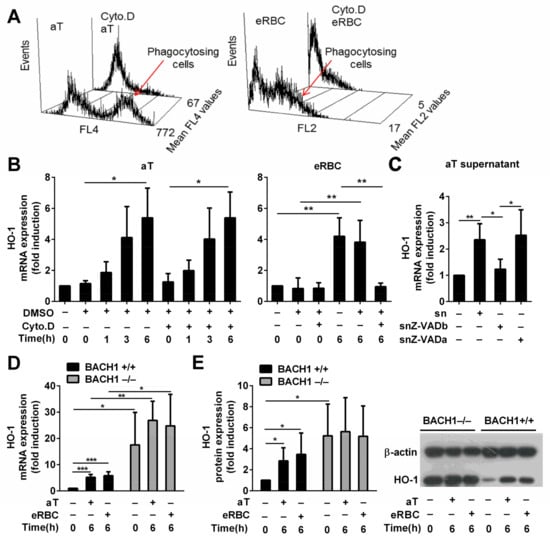 3.2. HO-1 Expression in Engulfing Macrophages Is Induced by Apoptotic Thymocytes via Soluble Signals, While the Induction by Dead RBCs Is Cell Uptake-Dependent