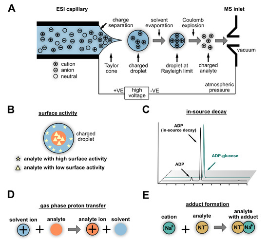 - Cech, N.B.; Enke, C.G. Practical implications of some recent studies in electrospray ionization fundamentals. Mass Spectrom. Rev. 2001, 20, 362–387. [Google Scholar] [CrossRef] [PubMed]