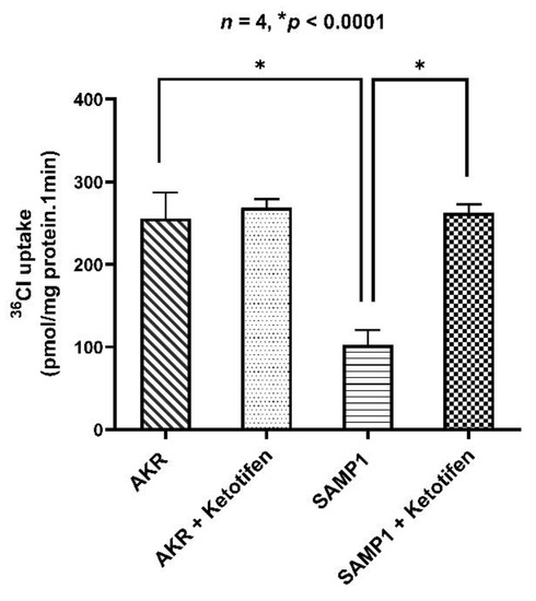 3.3. Effect of Ketotifen on Cl−/HCO3− Exchange in the BBMV of Ileal Villus Cell