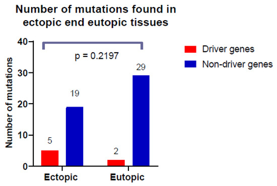 We also compared the occurrence of driver and non-driver genes mutation between ectopic and eutopic tissue, but it did not reach statistical significance (p = 0.2197), which is shown in Figure 2.