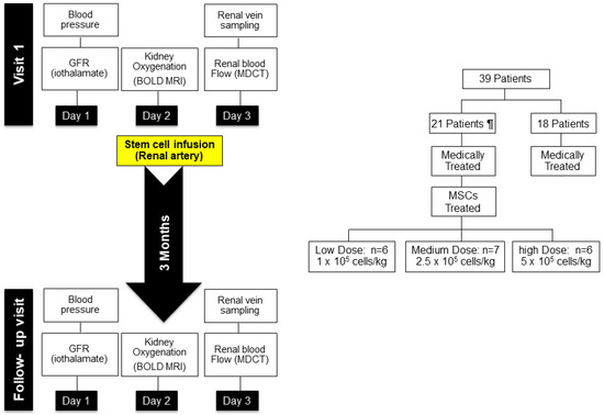 - Abumoawad, A.; Saad, A.; Ferguson, C.M.; Eirin, A.; Herrmann, S.M.; Hickson, L.J.; Goksu, B.B.; Bendel, E.; Misra, S.; Glockner, J.; et al. In a Phase 1a escalating clinical trial, autologous mesenchymal stem cell infusion for renovascular disease increases blood flow and the glomerular filtration rate while reducing inflammatory biomarkers and blood pressure. Kidney Int. 2020, 97, 793–804. [Google Scholar] [CrossRef]