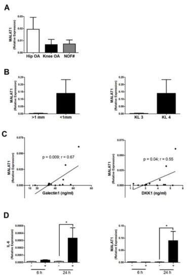 3.2. MALAT Expression in OA Osteoblasts Is Induced by Inflammatory Challenge