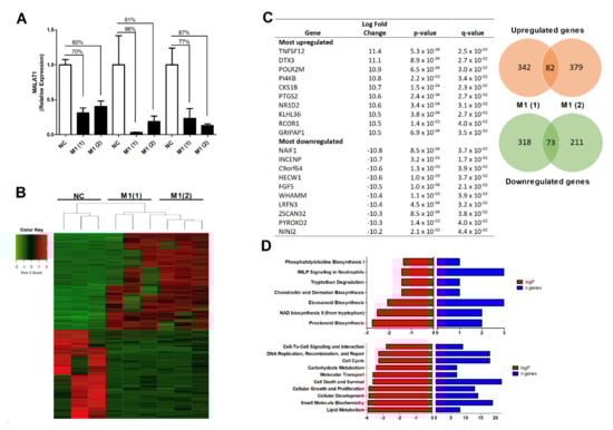 3.3. The Effect of MALAT1 Knockdown on the OA Osteoblast Transcriptome