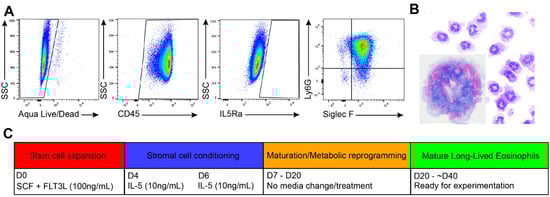 3.1. Generation of Long-Lived Eosinophils (llEos) Using Modified Bone Marrow-Derived Culture Protocol