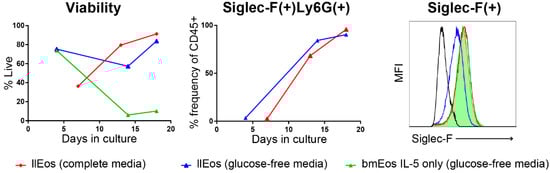 3.5. Glucose Is Dispensable for the Maturation and Survival of llEos but Is Necessary for Adequate Expression of Siglec-F
