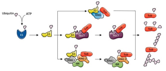 - Metzger, M.B.; Pruneda, J.N.; Klevit, R.E.; Weissman, A.M. Ring-type e3 ligases: Master manipulators of e2 ubiquitin-conjugating enzymes and ubiquitination. Biochim. Biophys. Acta 2014, 1843, 47–60. [Google Scholar] [CrossRef] [PubMed]