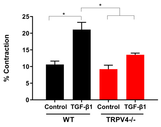 - Rahaman, S.O.; Grove, L.M.; Paruchuri, S.; Southern, B.D.; Abraham, S.; Niese, K.A.; Scheraga, R.G.; Ghosh, S.; Thodeti, C.K.; Zhang, D.X.; et al. TRPV4 mediates myofibroblast differentiation and pulmonary fibrosis in mice. J. Clin. Investig. 2014, 124, 5225–5238. [Google Scholar] [CrossRef]